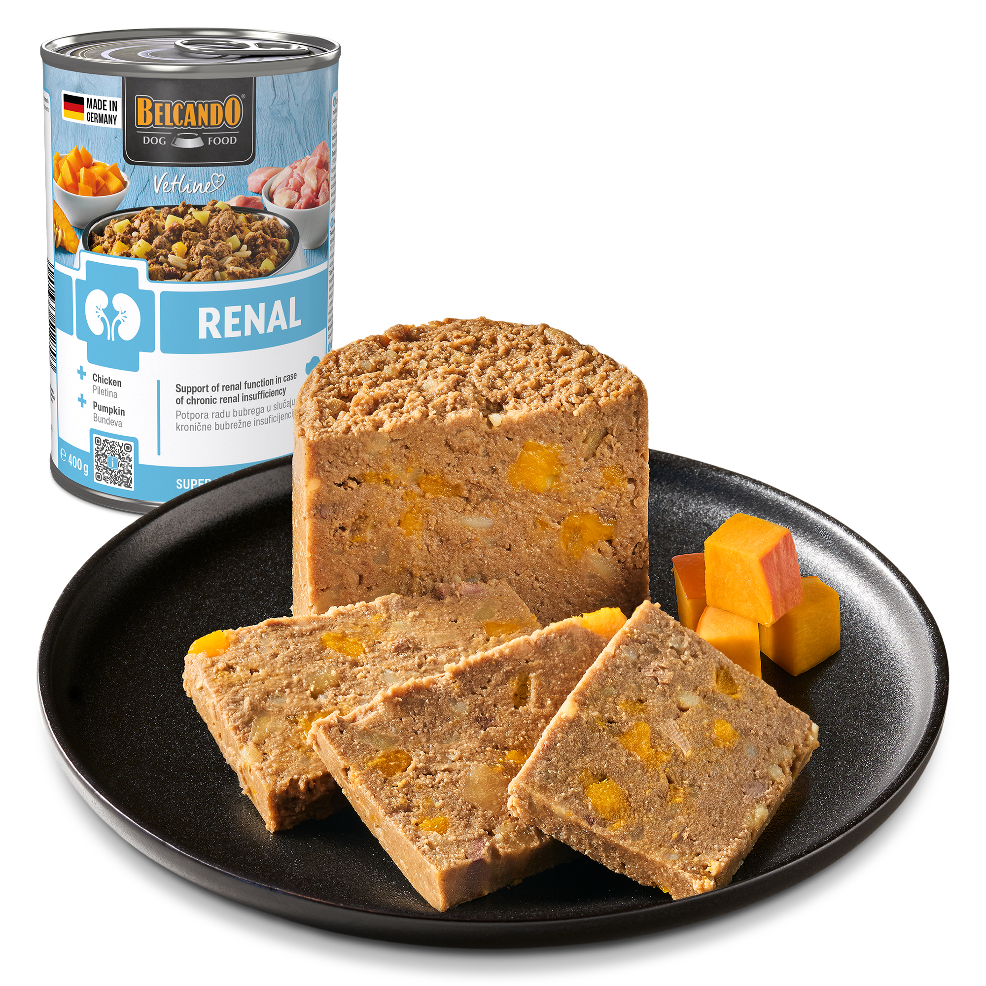 BELCANDO Vetline Renal – Élvezetes ízek, érezhető előnyök! Mely kutyák számára javasolt a Vetline Renal? Olyan kutyák számára, akiket (akut vagy krónikus) veseelégtelenséggel diagnosztizáltak, vagy akiknek az állatorvos javasolja a megfelelő diétás tápot. Egy kutya élete során különböző egészségi problémák adódhatnak. Az egyik leggyakoribb a veseelégtelenség – egy olyan betegség, amelyet gyakran hatékonyan kordában lehet tartani az olyan diétás komplett tápokkal, mint a Vetline Renal. Miben különbözik a BELCANDO Vetline a többi diétás komplett táptól? Csak a legjobb hozzávalókat használjuk, és a friss, kiegyensúlyozott összetételre fókuszálunk a kiemelkedő íz érdekében. Ebbe beletartoznak az olyan szuperösszetevők is, mint a sütőtök, az almarost és a friss csirke. A Vetline rugalmasságot is nyújt: nedves és száraz tápot is adhat, vagy akár mindkettőt. Bármelyiket is választja, mindet a lehető legalaposabban dolgoztuk ki az étkezés terén érzékeny kutyák számára. A zökkenőmentes átállás érdekében a legjobb, ha megmarad a kutya szokásos etetési rutinja. Tehát olyan típusú tápot válasszon, amely már ismerős a kutyája számára. Ha pedig a kutya a nedves és a száraz kutyatáp keverékét szereti, akkor folytathatja ezt a módszert a Vetline Renal nedves és száraz változataival.